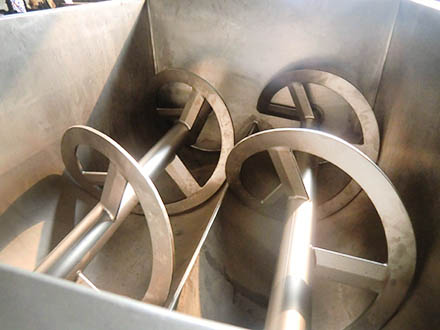 Вакуумная фаршемешалка ZKJB-600 предназначена для приготовления фарша путем перемешивания измельченного мяса с другими компонентами. Можно смешивать не только мясные фарши из мяса разных сортов, но также рыбные фарши, овощные рагу, творог, масло. В процессе перемешивания добавляются шпиг, специи, соль, комплексные добавки и другие ингредиенты. Все соприкасающиеся с продуктом детали выполнены из нержавеющей стали.Прочная станина и дежа. В деже установлены два вала, выполненных в виде лопаток, расположенных лопастями по касательной к спирали. Валы фаршемешалки установлены на подшипниках, что значительно повышает надежность и долговечность этих узлов. Вращение шнеков возможно в разных направлениях. Привод каждого шнека осуществляется при помощи отдельного мотор-редуктора через цепную передачу.
