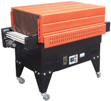 Принцип работы: конвейер с нагревательной камерой (тоннелем). Продукт упаковывается в плёнку на столе, обрезается термоножом, затем проходит через тоннель, где плёнка усаживается благодаря циркулирующему горячему воздуху .